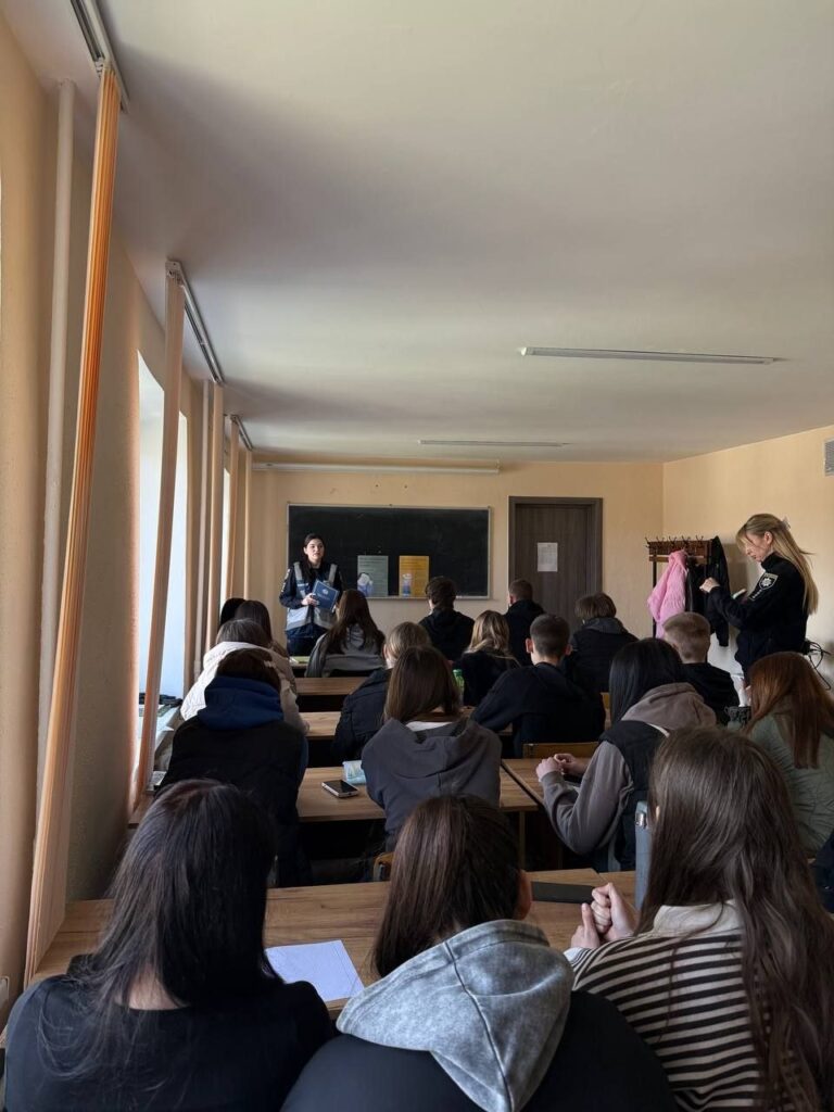 Старший психолог сектору кадрового забезпечення Дарина Малинка та старший інспектор ювенальної превенції Яніна Царенко поспілкувалися зі студентами на важливі теми: надання першої психологічної допомоги та адміністративна відповідальність неповнолітніх.
